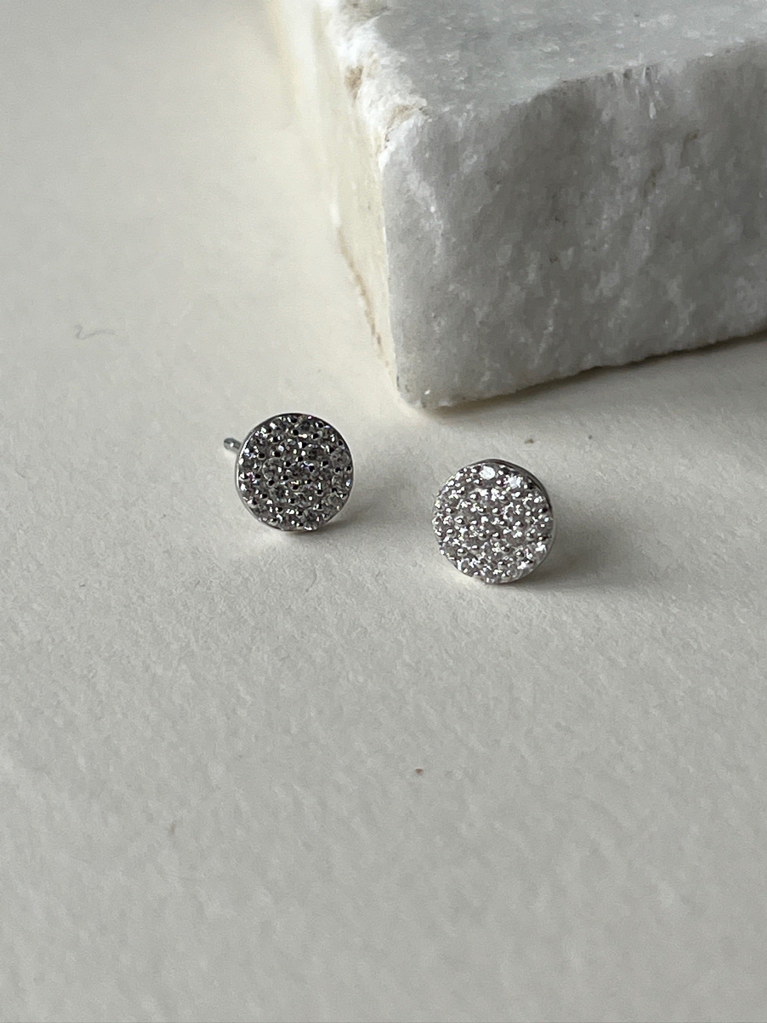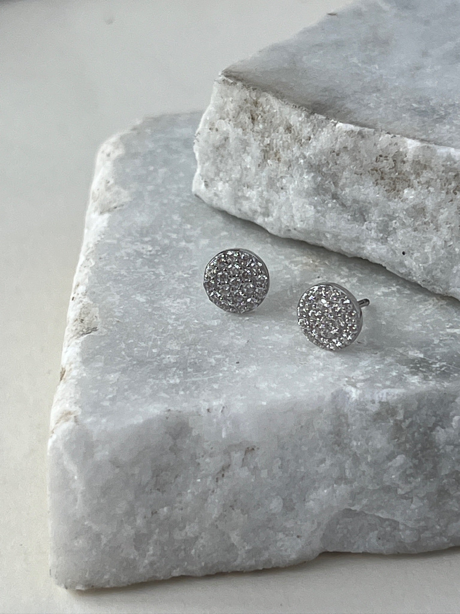 Círculo Total Brillo con Zirconia (7mm). Estos aretes circulares completamente cubiertos de zirconias en Plata .925 iluminan tu rostro como una estrella nueva en el cielo.