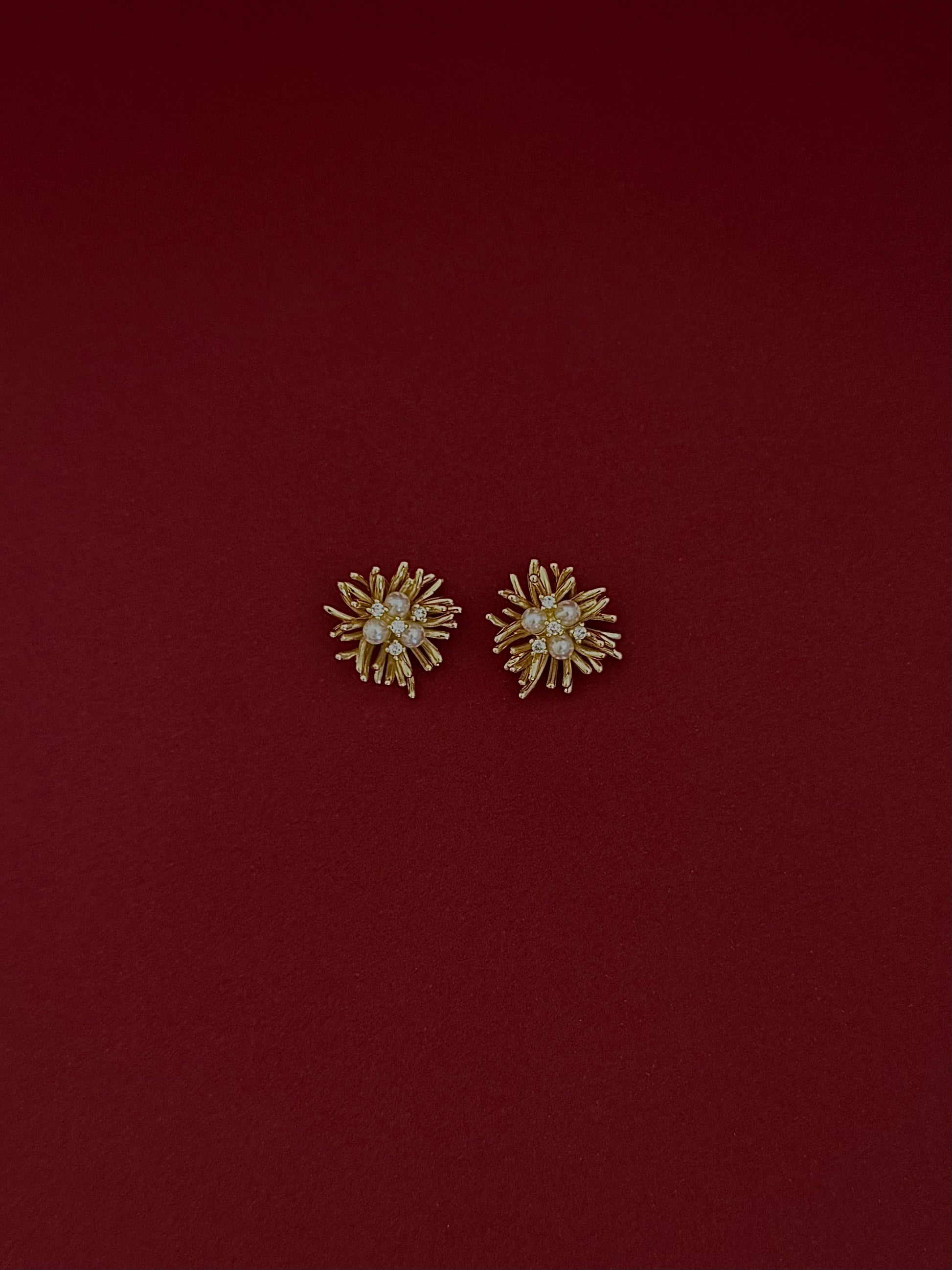 Aretes Flor Perlas con Zirconia Lisos Dorados