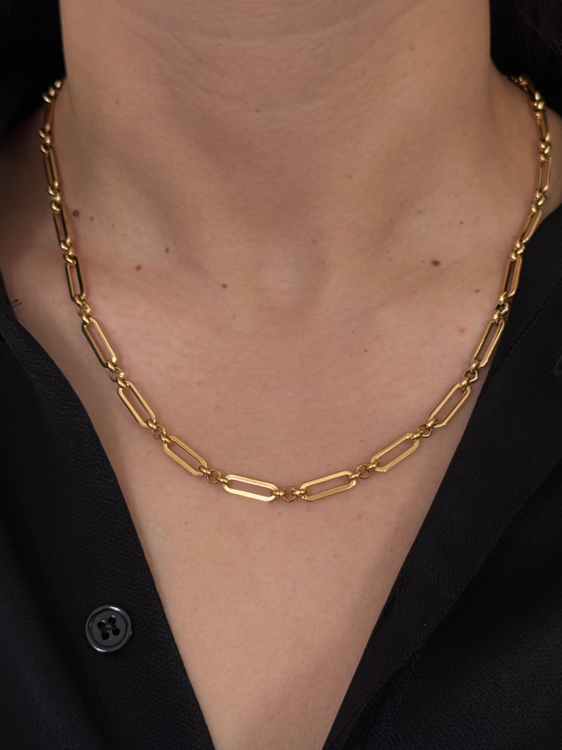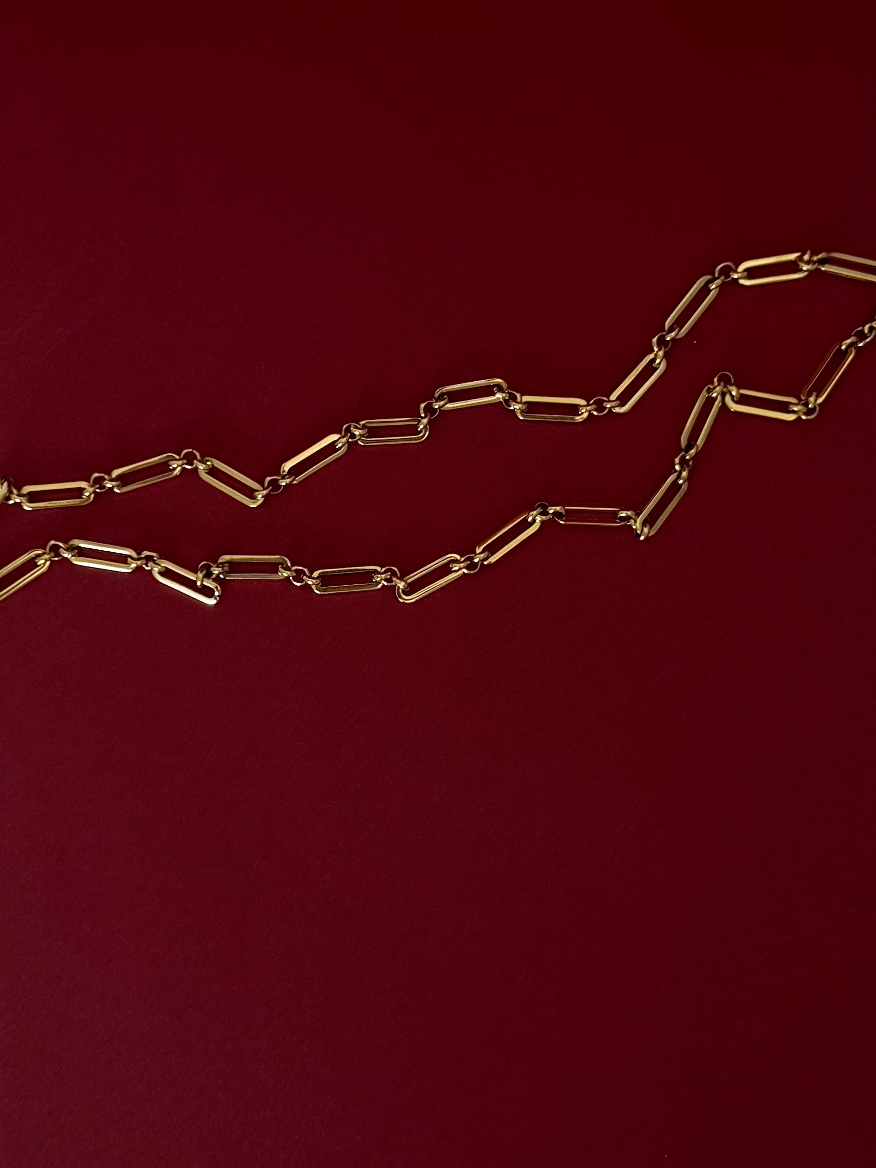 Cadena Rectangular con Círculos Delgada Dorada