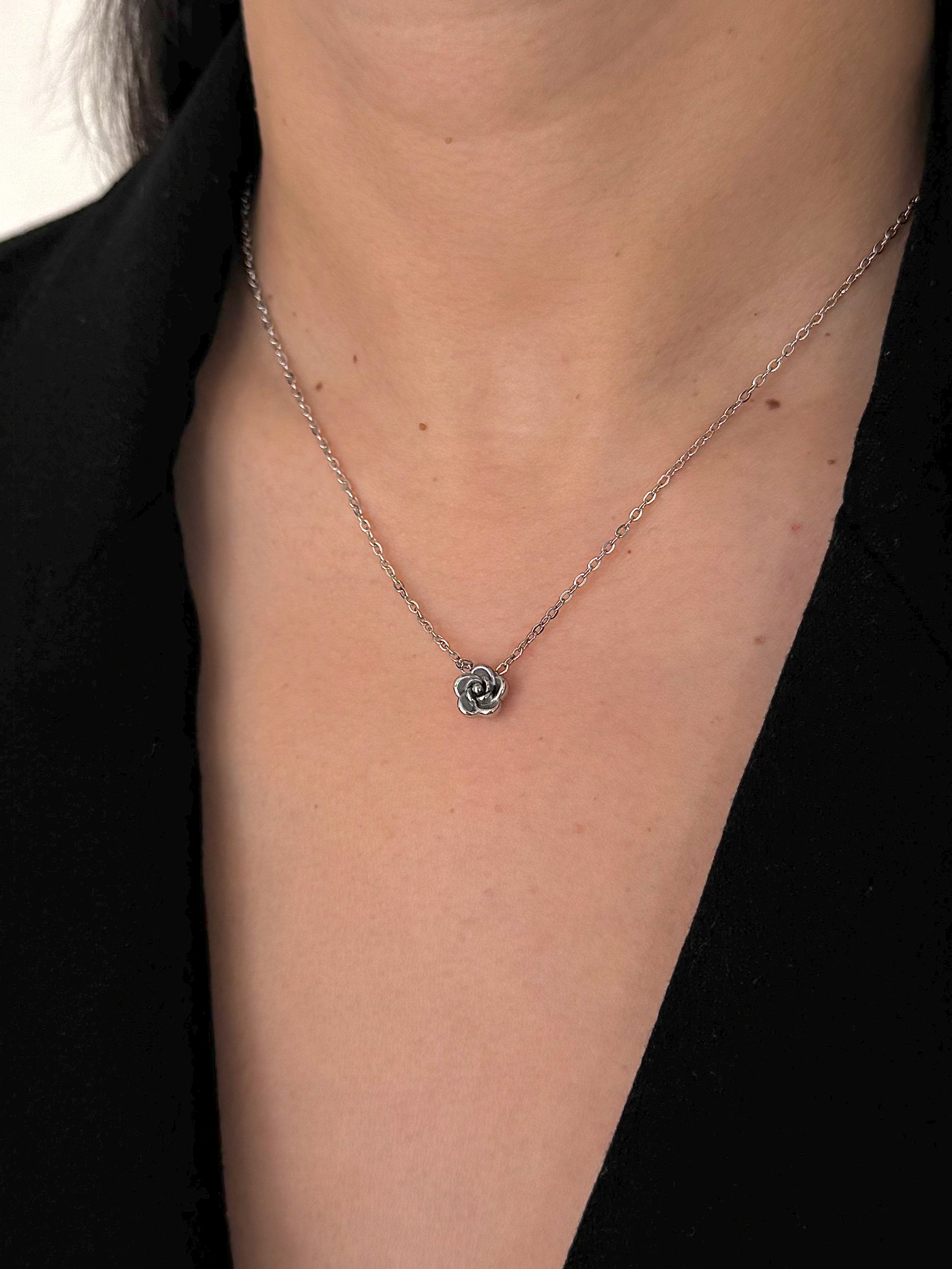Collar Rosa Abierta Mini Plateado