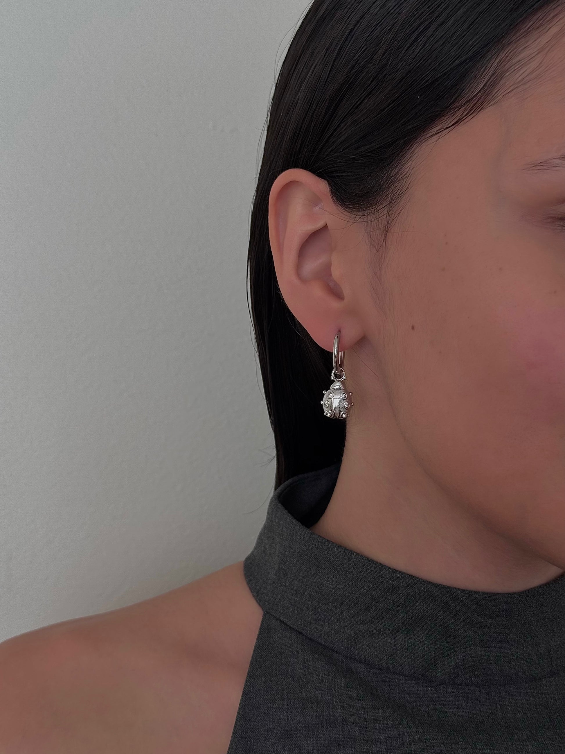 Huggies Plateadas con Catarinas y Zirconias Blancas