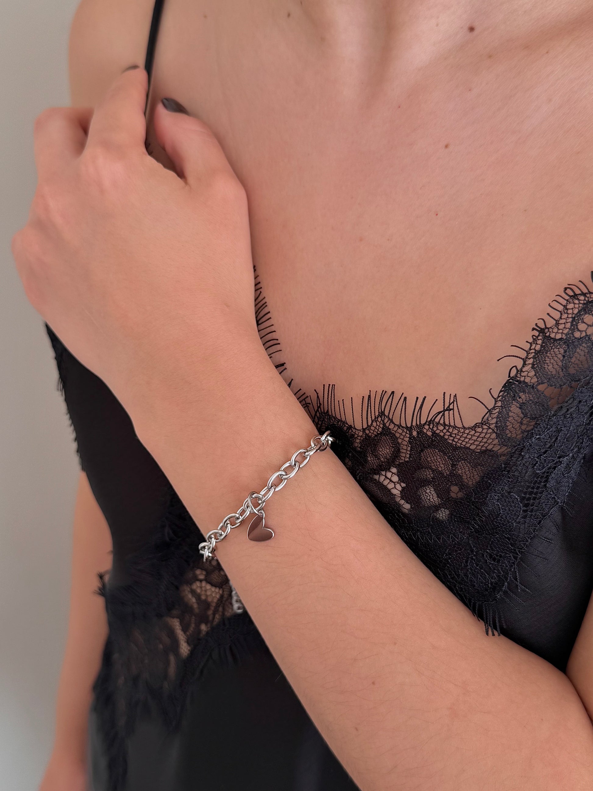 Pulsera Eslabones con Corazón Plateada
